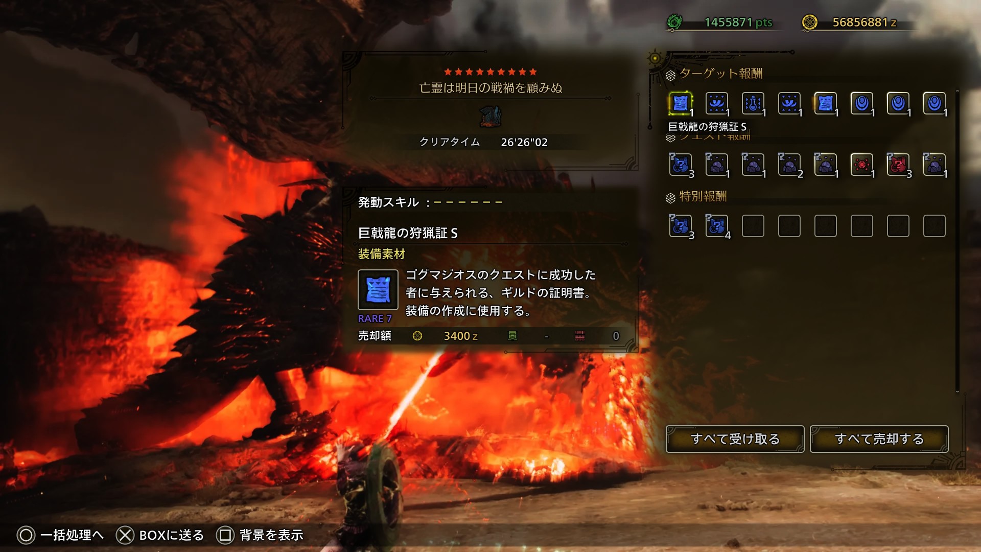ご褒美であるアーティア武器の追加強化ガチャは楽しいですねー。なおYouTubeの解説動画によると真面目にやれば所望の効果を狙って出すこともできるらしいのですが、僕的にモンハンをやるときはできるだけアタマを使いたくないので、特にそういったテクニックは使わず今まで通り脳筋プレイを貫こうと思います。にしても入手素材の「戦火の龍玉」全然出ないですね! 確率1%て! 最低でもあと5個ほしいんですけど?? これはなかなか沼が深そうです。